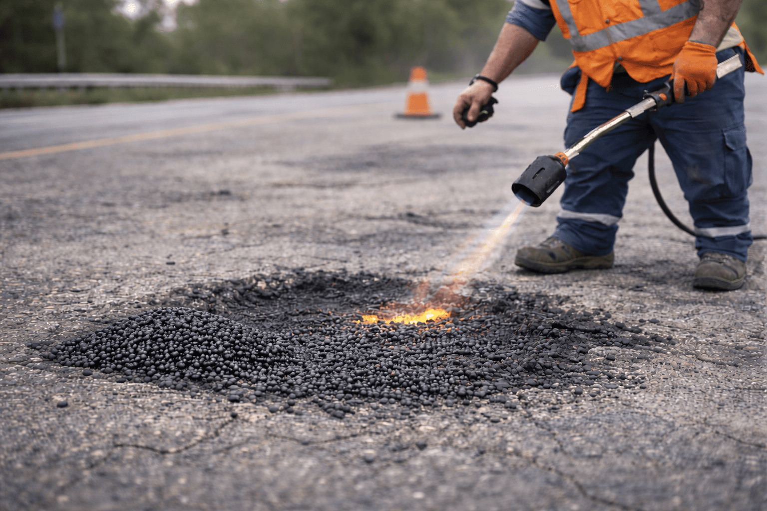 EcoPellets melt and bond quickly with damaged road surfaces, enabling rapid pothole repair and minimizing traffic disruption.